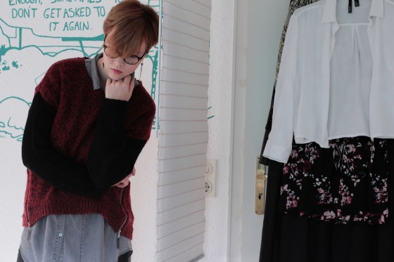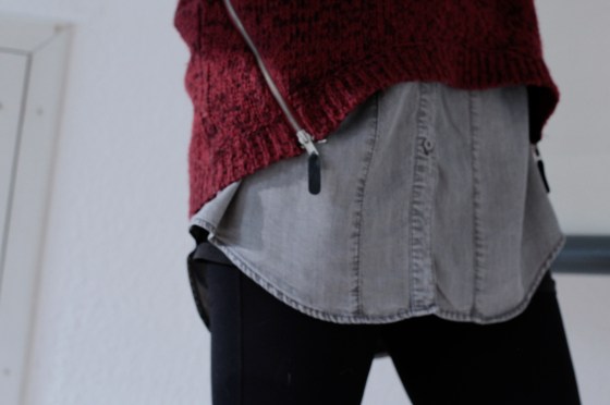 Langsam beginnt die kalte Jahreszeit und ich bin zurück in Hamburg. Umso kälter es draußen wird, umso kuscheliger müssen die Klamotten sein, die ich anziehe. Vielleicht kennt ihr das ja. Heute war wieder so ein ungemütlicher Tag, also habe ich einen meiner Lieblingspullover aus dem Schrank gezerrt. Ich mag ihn nicht nur, weil er unglaublich warm hält, sondern durch die schwarzen Ärmel und die Reißverschlüsse am Saumen etwas Besonderes ist. Heute hab ich ihn ziemlich lässig kombiniert mit einem Hemdkleid, einer Leggings, wobei ich generell kein Fan von Leggings bin, und meinen Dr.Martens.