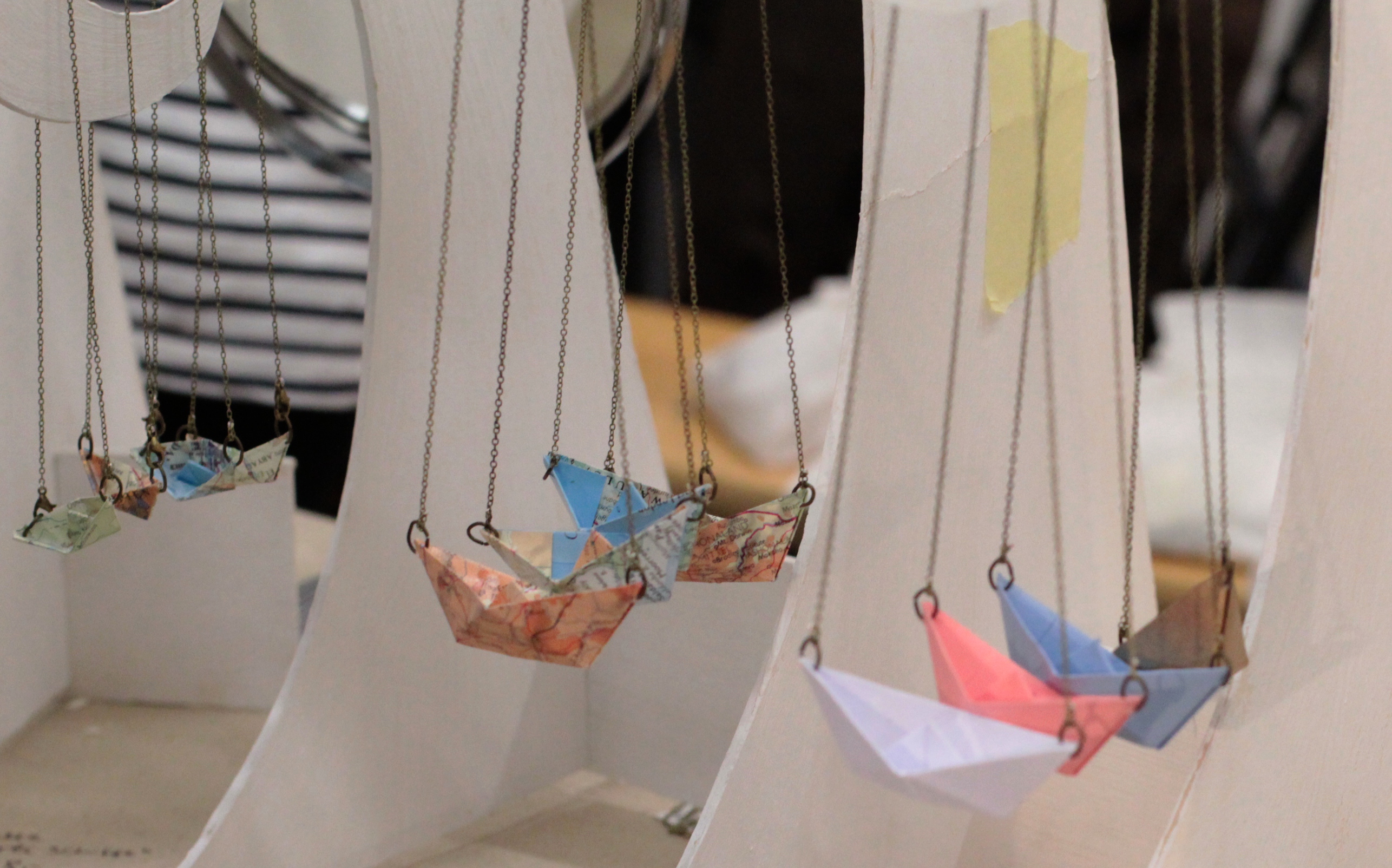 Ein weiterer Stand, an dem ich als Hamburgerin nicht einfach vorbei laufen konnte ohne etwas zu kaufen, war der von WommerSind. Kleine Papierkunstwerke werden zu einzigartigen Schmuckstücken. Gerade die Boote haben es mir angetan, sodass ich gleich zwei genommen habe.