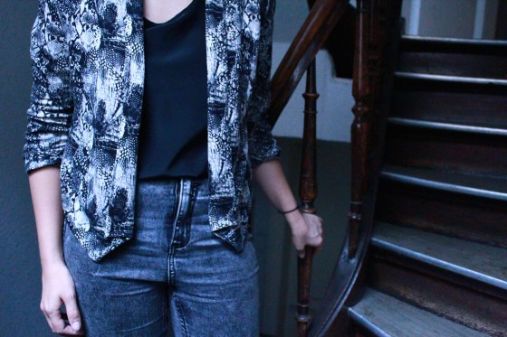 Trotz des ganzen Trubels, habe ich euch nicht vergessen und mir die Zeit für einen neuen Outfit-Post genommen. Eher ein Look für den Abend aber trotzdem lässig und cool. Besonders stolz bin ich auf meine neuen, heißgeliebten Reebok Sneaker. Im Gegensatz zu vielen anderen Sneakern machen sie meiner Meinung nach einen schönen schmalen Fuß und sind einfach irre bequem. Dazu eine graue Röhrenhose, ein Seidentop und einen Blazer mit Schlangensprint und schon kann man die ganze Nacht durchtanzen. Was meint ihr?