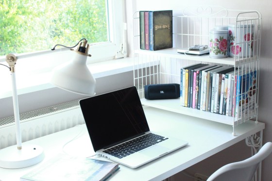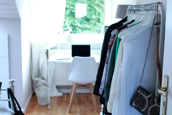 Nicht nur die Tapete, sondern auch mein Bett, welches ich vor einigen Jahren zufällig entdeckt habe, war Liebe auf den ersten Blick. Grade bei meinem doch recht kleinem Zimmer achte ich stets drauf zierliche und offene Möbel zu finden, um dem Zimmer mehr Raum zu geben. So haben es der Schreibtisch, die Kommode und eine Kleiderstange, die ich mir bereits in Stuttgart zugelegt habe, es in mein neues Zimmer in Hamburg geschafft und machen sich auch in hier recht gut.
