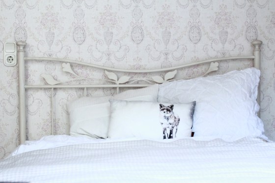 So wie ich in den letzten paar Jahren, sollte nun auch mein Zimmer ein Stück weit erwachsener werden, ohne eine gewisse Verspieltheit zu verlieren. So mussten die rosafarbenen Wände einem zarten Taupe weichen. Die Stirnseite des Zimmers schmückt eine romantische Tapete mit einem durchbrochenem Muster, in die ich mich sofort verliebt habe. Leicht mädchenhaft aber nicht ganz so aufdringlich.