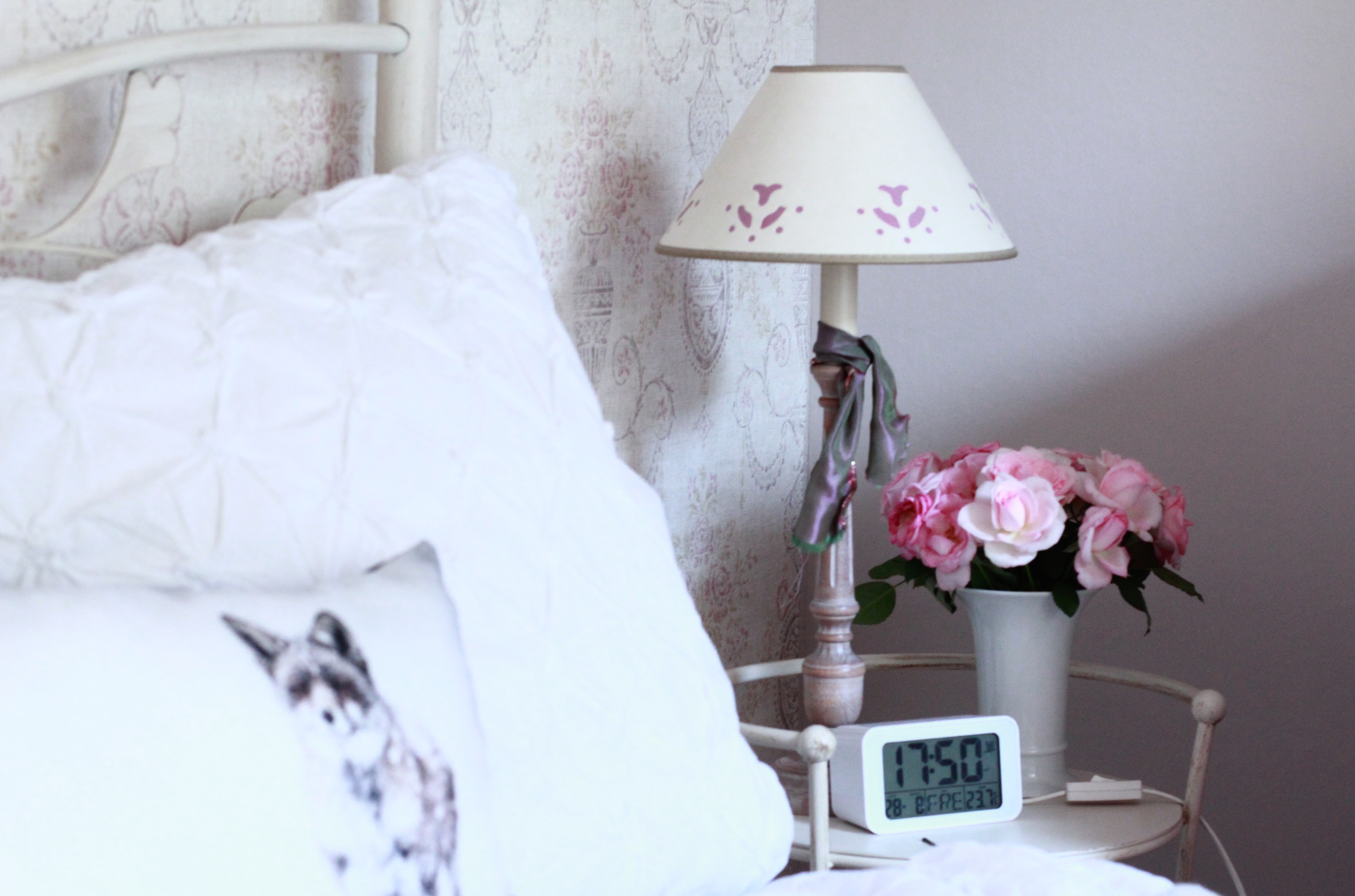 So wie ich in den letzten paar Jahren, sollte nun auch mein Zimmer ein Stück weit erwachsener werden, ohne eine gewisse Verspieltheit zu verlieren. So mussten die rosafarbenen Wände einem zarten Taupe weichen. Die Stirnseite des Zimmers schmückt eine romantische Tapete mit einem durchbrochenem Muster, in die ich mich sofort verliebt habe. Leicht mädchenhaft aber nicht ganz so aufdringlich.