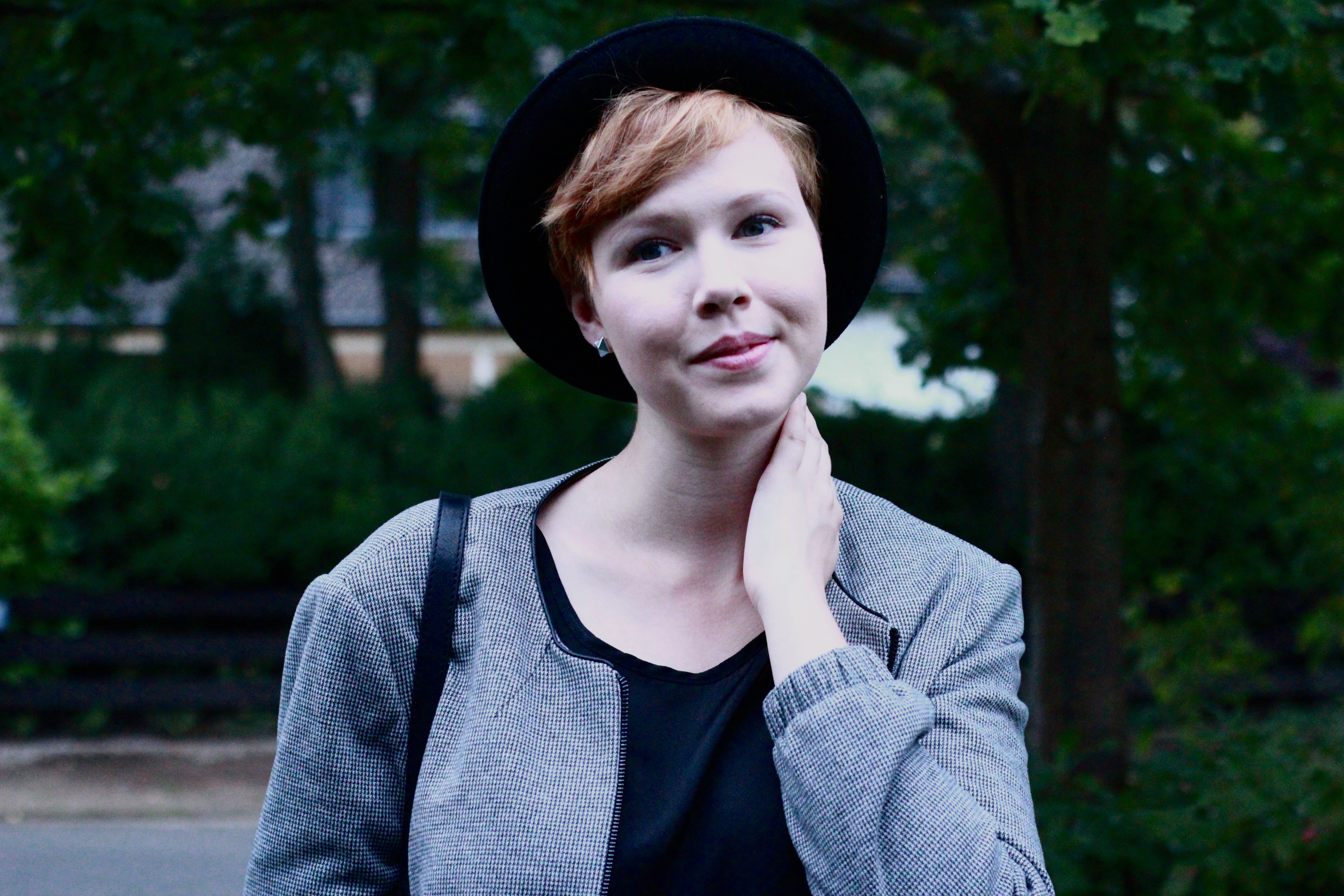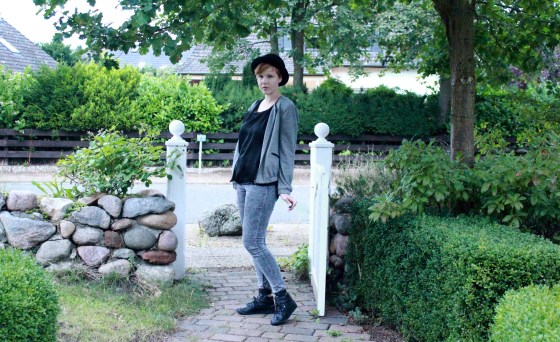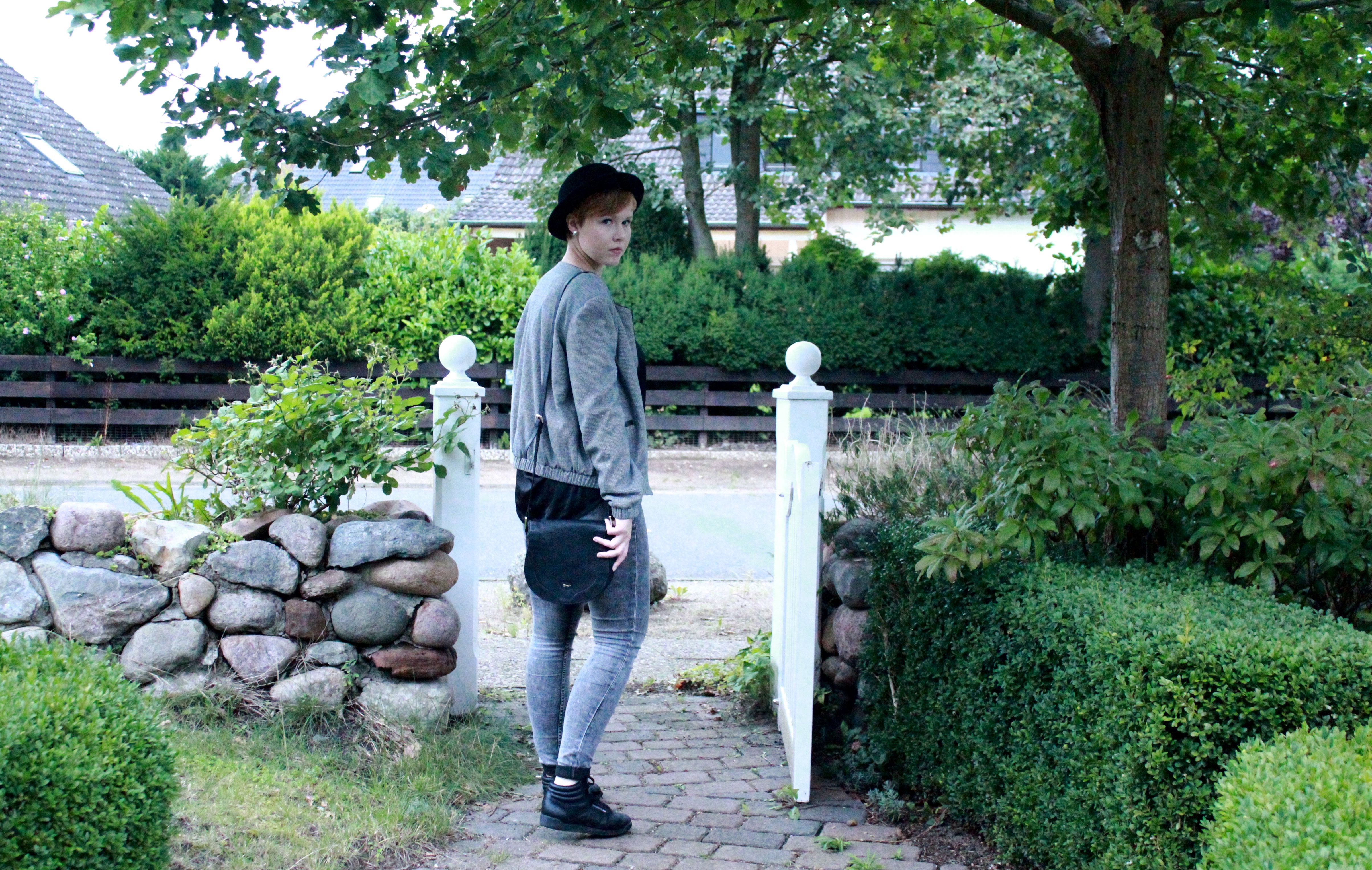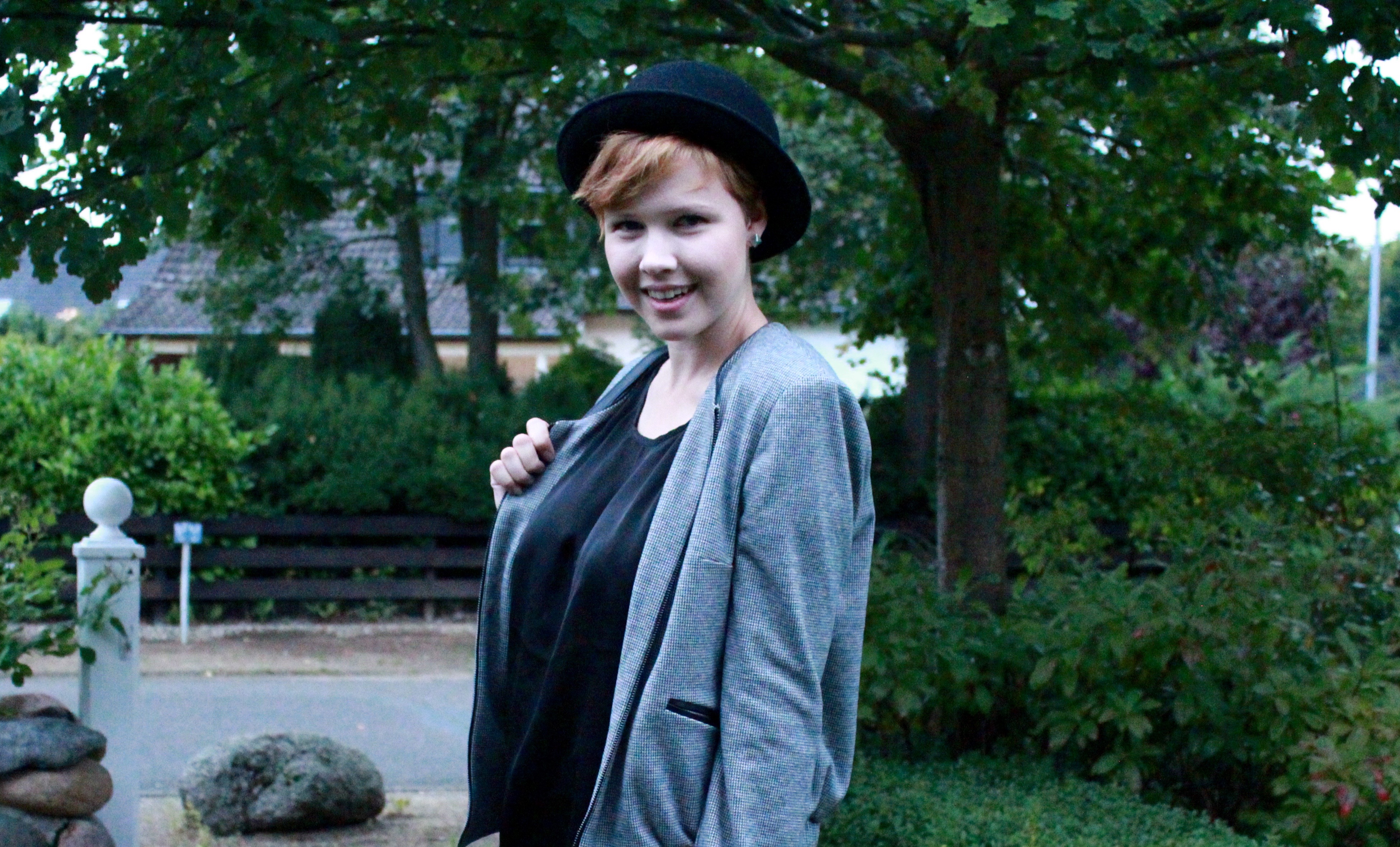 Ich mag das Outfit total gerne – eine tolle grau-schwarz Kombination. Und der Hut ist megasuper!! Steht dir sehr gut! Ich hab leider nicht genug Mut, um einen Hut zu tragen…
