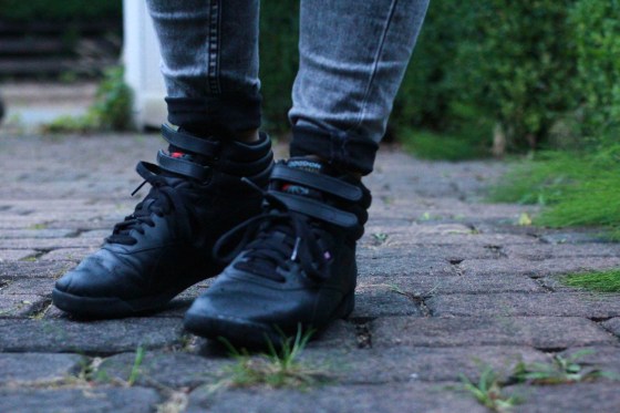 Hose – Monki , Jacke – BAFwoman (ähnliche hier) , T-Shirt – S.Oliver (ähnliches hier) , Hut – Esprit (ähnlicher hier) , Tasche – Paul Costelloe , Schuhe – Reebok